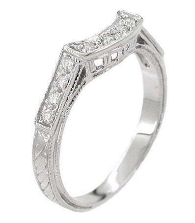 This Art Deco platinum engagement ring mounting is sold without a center diamond - you can add a certified round 3/4 carat diamond above and our jewelers will complete your custom engagement ring, or you can buy this ring semimount with no stone, as shown, to have it set with your own diamond or gemstone by your jeweler.