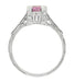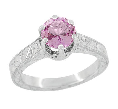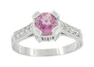 Art Deco 1 Carat Pink Sapphire Engraved Castle Engagement Ring in Platinum