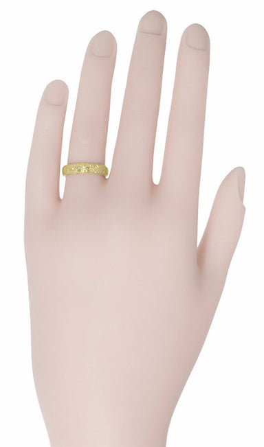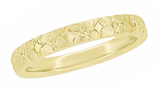 Yellow Gold Hawaiian Hibiscus Flowers Heirloom Carved Wedding Ring - 3mm Wide