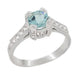 This ring measures 7.2 millimeters wide at the top of the setting, tapering down to 2.5 millimeters wide at the bottom of the band, and sits 1/4 inch off the finger. A perfect symbol of your everlasting love, this wonderful platinum filigree aquamarine engagement ring is an heirloom showpiece to be cherished for generations to come!