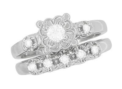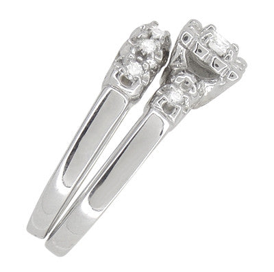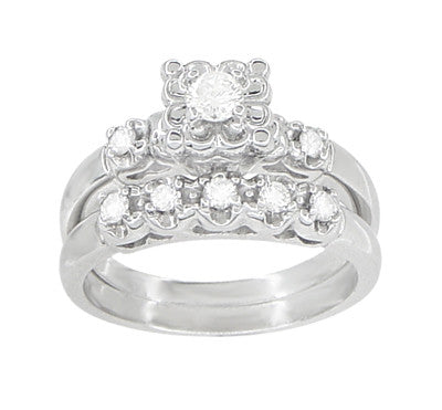 Lucky Clover Retro Moderne White Sapphires Wedding Set in 14K White Gold