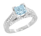 Art Deco X & O Kisses 3/4 Carat Princess Cut Aquamarine Engagement Ring in 18 Karat White Gold