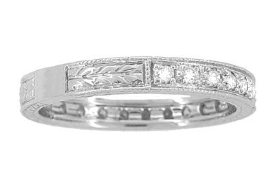 Art Deco Engraved Wheat Diamond Eternity Wedding Band in White Gold - 14 or 18 Karat