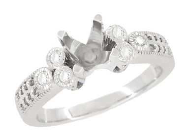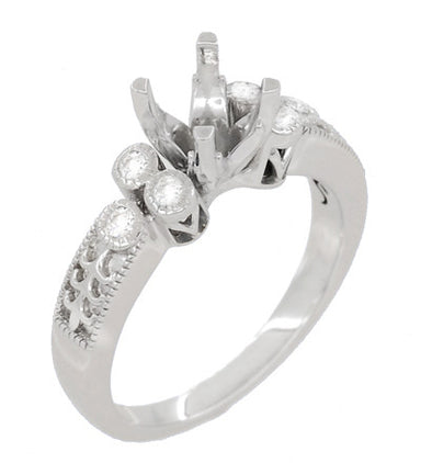 Edwardian Antique Style 1 Carat to 1.30 Carat Filigree Engagement Ring Mounting in 14 or 18 Karat White Gold for a Round Stone