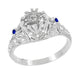 Edwardian Engagement Ring Setting for a Round Stone with Side Blue Sapphires and Diamonds in 18 Karat White Gold