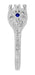 This unforgettable vintage style Edwardian diamond and sapphire engagement ring setting in 18K white gold is sold without a round center stone - and is crafted to accommodate a round brilliant cut diamond of 6.2 - 7.3 millimeters in diameter and approximately 0.85 - 1.30 carats in weight.
