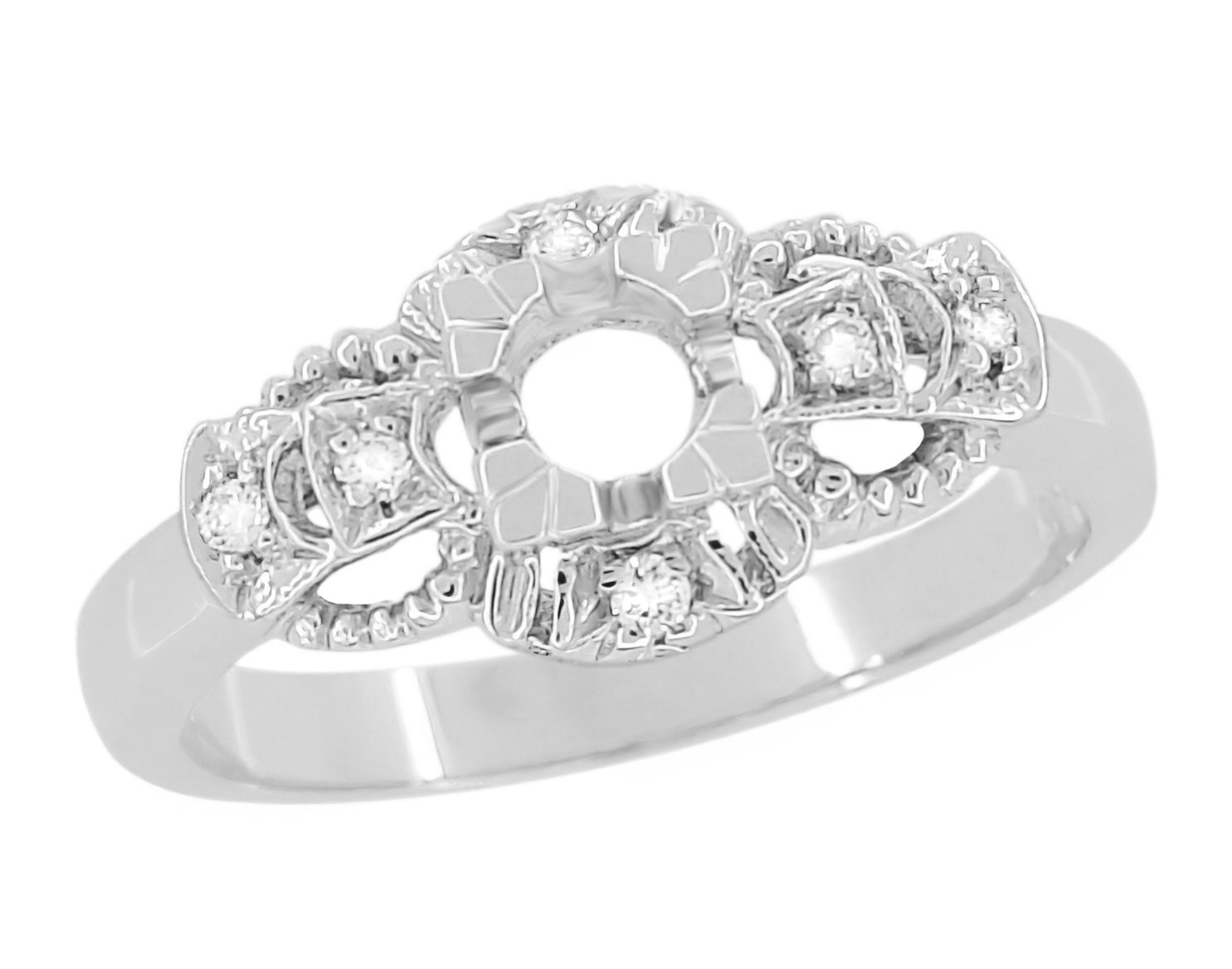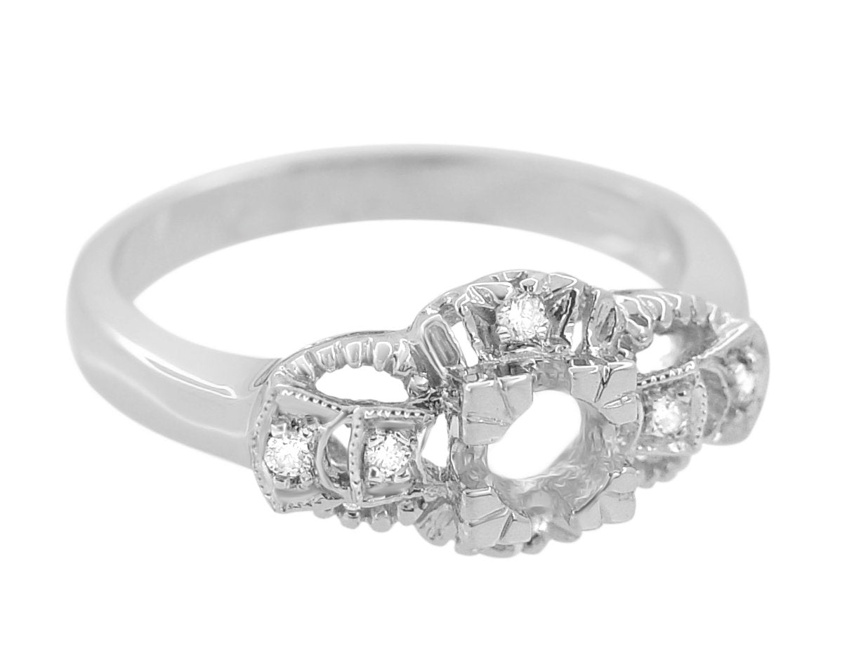 Filigree East to West Art Deco Engagement Ring Setting in White Gold for a 1/4 Carat Round Diamond