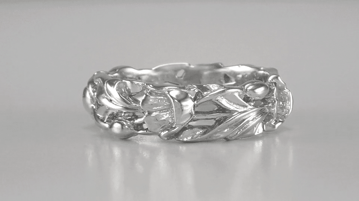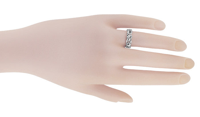 Filigree Lilies Artisan Wedding Band in 14 Karat White Gold - 6mm Wide