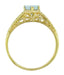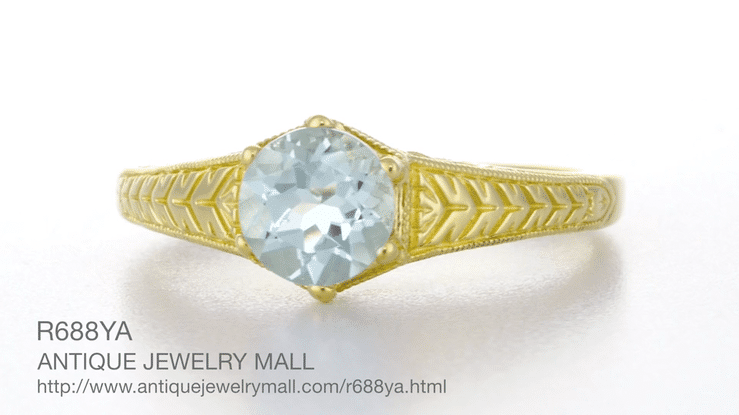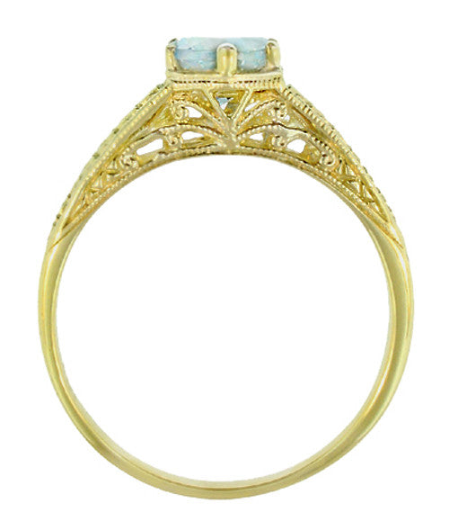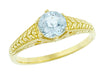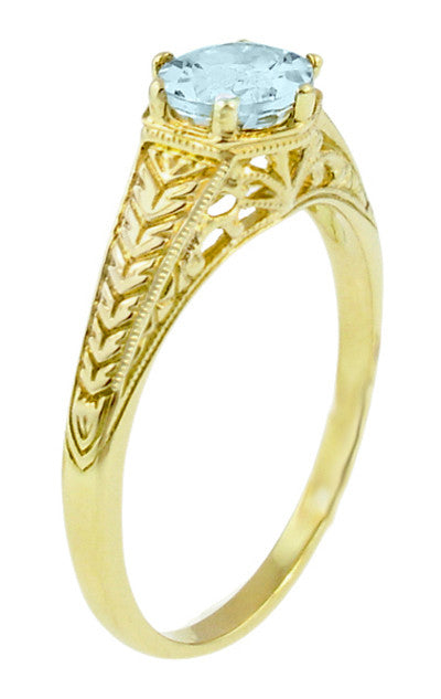 Art Deco Scrolls and Engraved Wheat Aquamarine Solitaire Filigree Engagement Ring in 18 Karat Yellow Gold