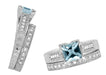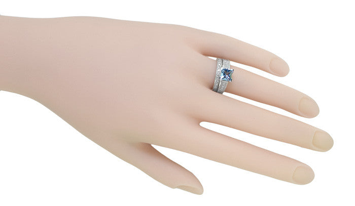 X & O Kisses 1 Carat Princess Cut Aquamarine Engagement Ring in 18 Karat White Gold