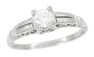 Art Nouveau Flowers and Leaves Filigree Solitaire Engagement Ring Setting for a Round 1/2 Carat Diamond in White Gold - 14K or 18K