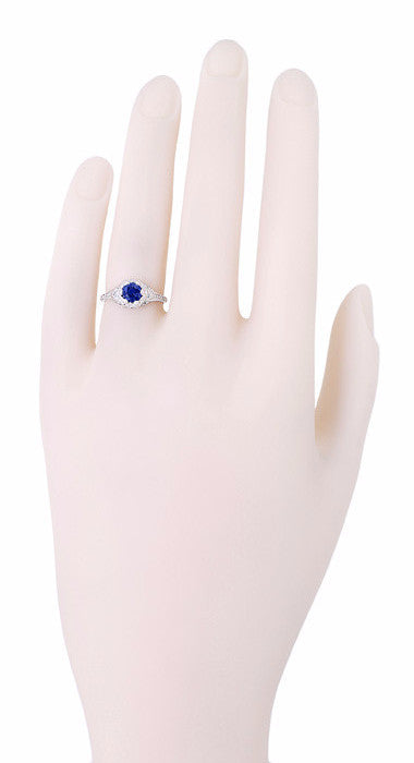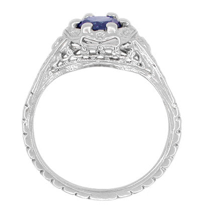 Art Deco Filigree Flowers Sapphire Engagement Ring in 14 Karat White Gold