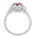 Art Deco Filigree Flowers Rhodolite Garnet Engagement Ring in 14 Karat White Gold