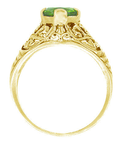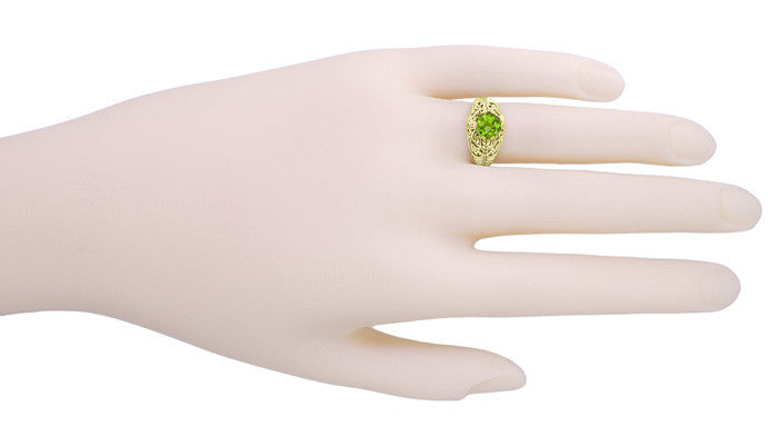 Peridot Filigree Edwardian Engagement Ring in 14 Karat Yellow Gold