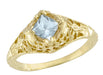 Edwardian Floral Filigree Square Aquamarine Engagement Ring in 14K Yellow Gold