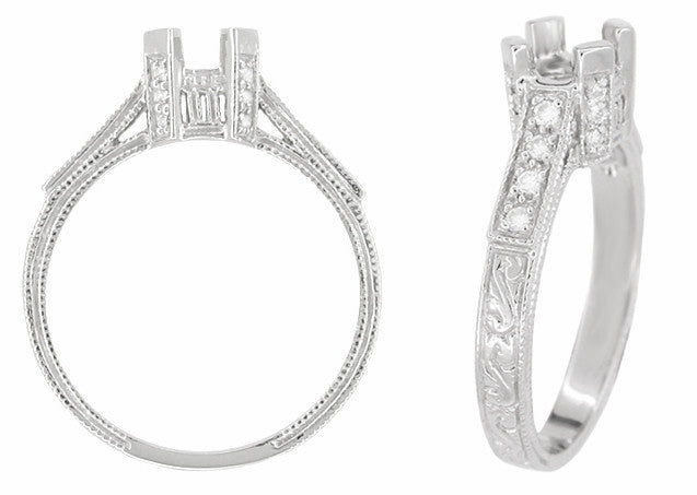 Art Deco Castle 1/3 Carat Diamond Filigree Engagement Ring Semi-Mount in 18 Karat White Gold