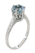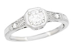 Hand crafted in your choice of 10K, 14K or 18K white gold with an engraved wheat, flowers, and scrolls pattern on 2 outward facing sides, this sculptural Art Deco contoured wedding ring is designed to fit around our curved engagement ring styles and measures 1.9 millimeters wide.