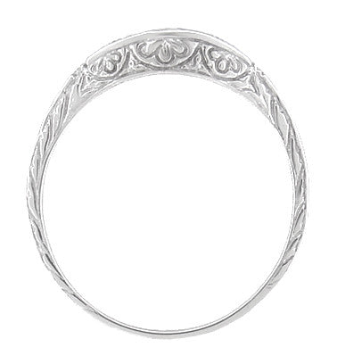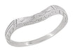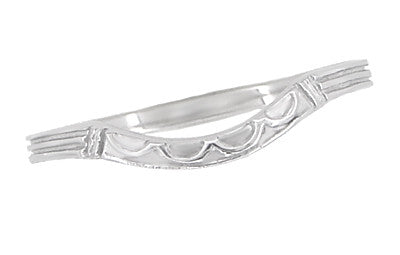 Art Deco Sculptural Carved Curved Wedding Band in White Gold