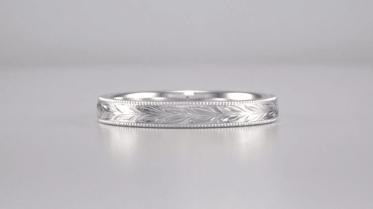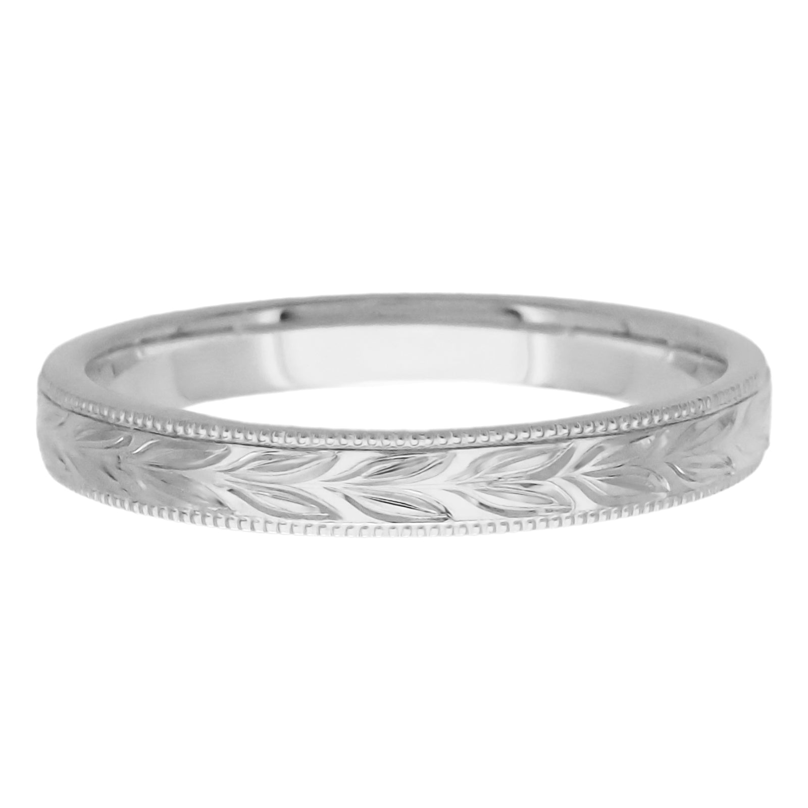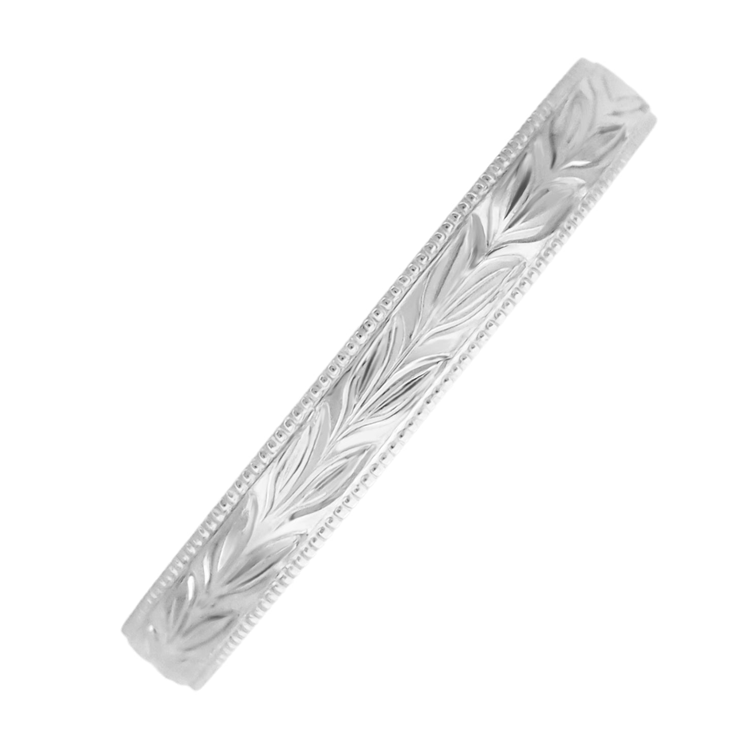 Art Deco Hand Carved Hawaiian Maile Leaves Wedding Band in White Gold - 10K, 14K or 18K