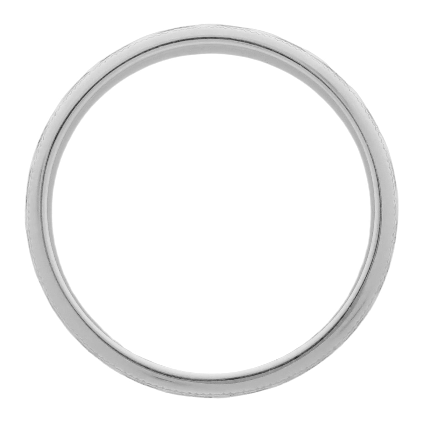 Crafted to order in your choice of 10 Karat, 14 Karat or 18 Karat white gold, measurements for the band are 3 millimeters wide and 1.7 millimeters thick.
