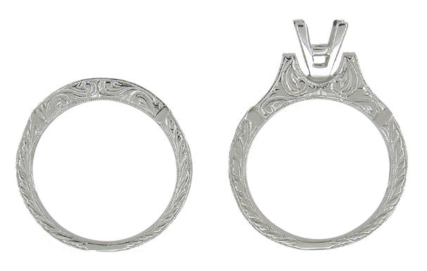 Art Deco Engraved Scrolls 1/2 Carat Princess Cut Diamond Engagement Ring Setting and Matching Wedding Ring in Platinum