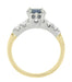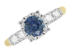 1950's Vintage Style Mid Century Cornflower Blue Sapphire Engagement Ring with Side Diamonds in Mixed Metal 14K Yellow & White Gold