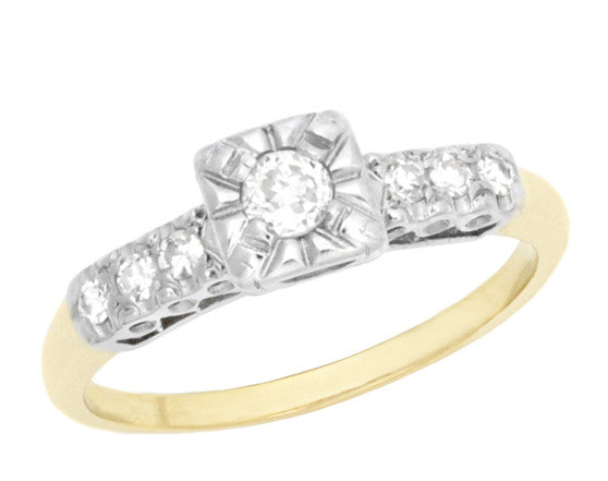 Harlowe 1930's Vintage Old Mine Cut Diamond Engagement Ring in 14K Yellow and White Gold Mixed Metals