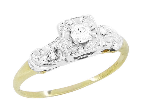 Heartlock Retro 1950's Illusion Vintage Diamond Engagement Ring in Mixed Metal 14K Yellow and White Gold