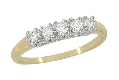 Mid Century Antique Diamond Wedding Band in 14 Karat Yellow and White Gold