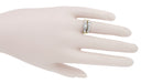 The straightline design of the accompanying 5 diamond wedding ring is lovely enough to be worn alone. All diamonds are set in white gold to enhance their brightness, and a filigree open under gallery under all of the stones in both rings invites light under the diamonds for a brilliant overall presentation.