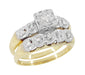 1950's Westford Two Tone Vintage Diamond Wedding Ring and Engagement Ring Set in 10K Yellow and White Gold