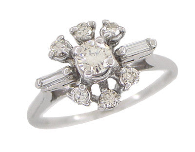 Galaxy of Diamonds Mid-Century Vintage Ring in 14 Karat White Gold