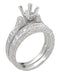 This antique ring mounting design is sold without a diamond center stone as shown, and a square or princess cut diamond of 5.7 - 6.1 millimeters square can be securely set into the engagement ring setting.