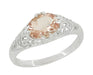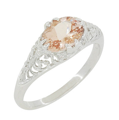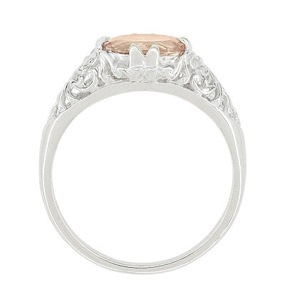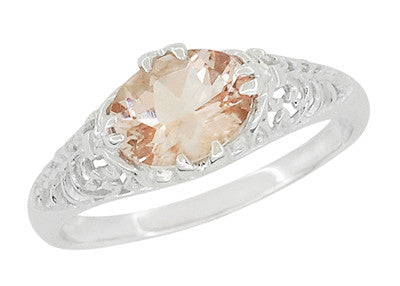 Morganite Oval East West Filigree Edwardian Engagement Ring in White Gold - 14K or 18K