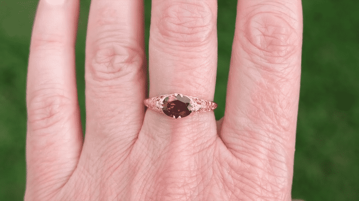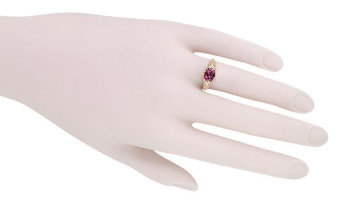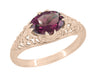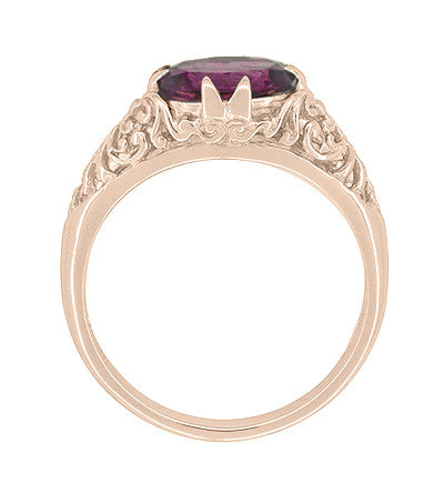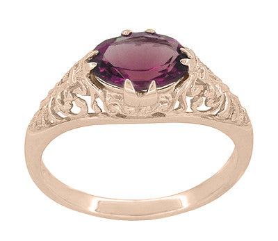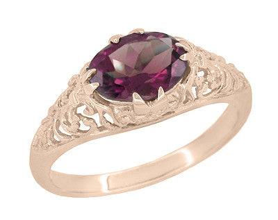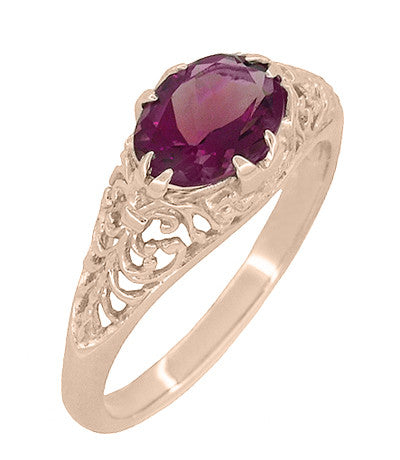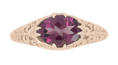 Edwardian Filigree 14 Karat Rose Gold East West Oval Rhodolite Garnet Engagement Ring
