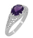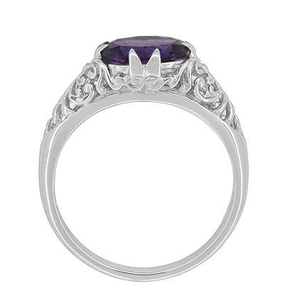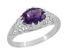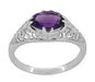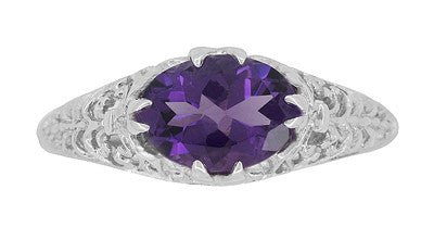 Edwardian Oval Amethyst Filigree Ring in White Gold - East to West Horizontal Design