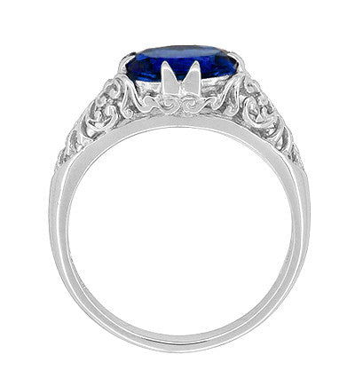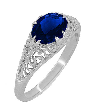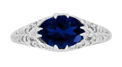 Filigree Edwardian Oval Blue Sapphire Engagement Ring in White Gold