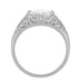 The ring is finished with exquisitely detailed artisan filigree scrollwork and crafted as an exact reproduction of an antique original engagement ring. Wonderful to wear, this classic filigree white topaz ring evokes the romance of a bygone era!