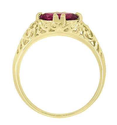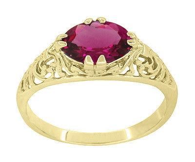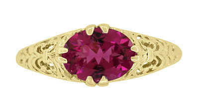 Yellow Gold Edwardian Oval Rubellite Tourmaline Filigree Engagement Ring - October Birthstone