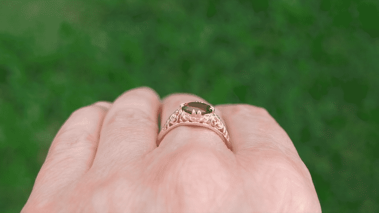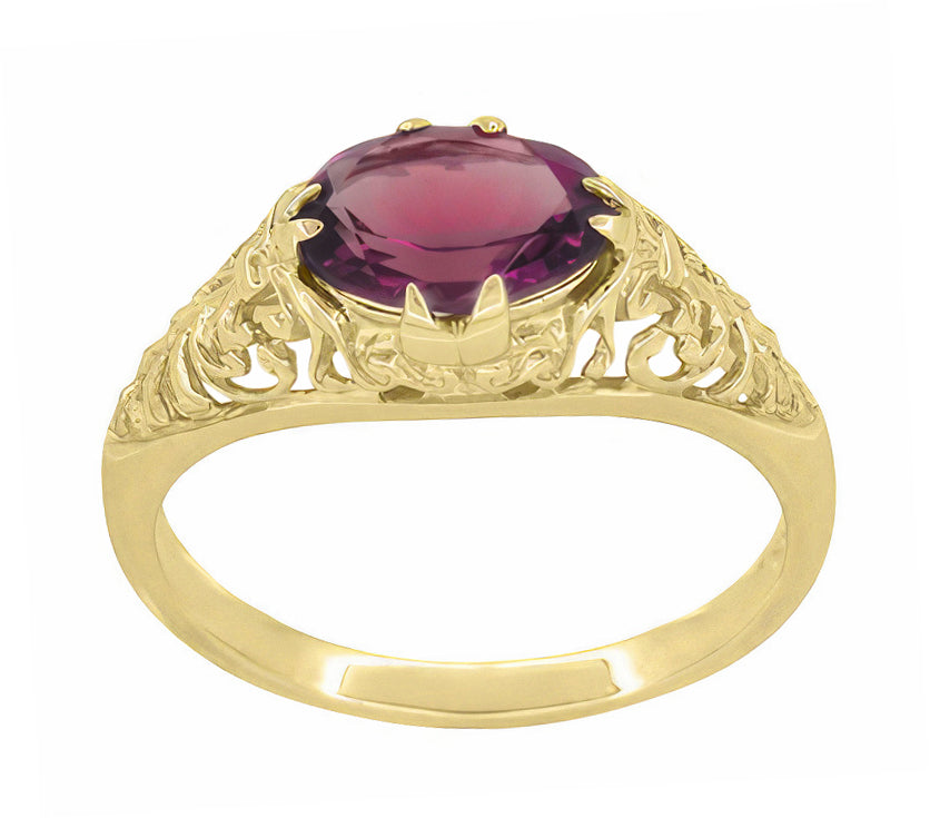 Yellow Gold Edwardian East West Oval Rhodolite Garnet Filigree Engagement Ring
