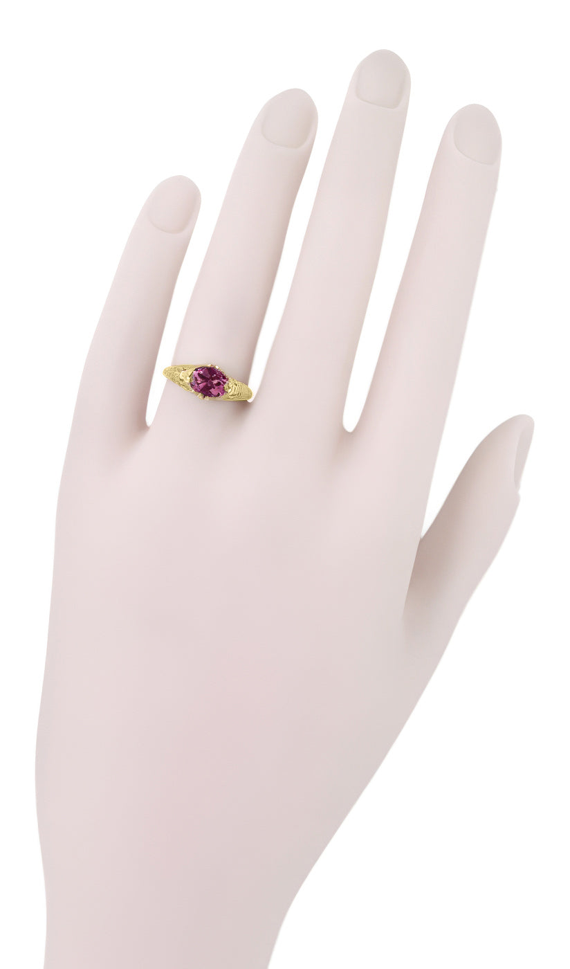 Made to order in your choice of 18K or 14K yellow gold, this enchanting rhodolite garnet engagement ring is a faithful reproduction of an antique original - a wearable work of art for a garnet lover to treasure always.