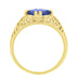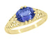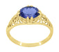 Yellow Gold Edwardian Fleur-De-Lys Filigree East to West Oval Tanzanite Ring
