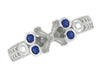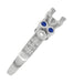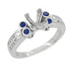 Vintage Fleur De Lis Carved Engagement Ring Mounting with Side Sapphires and Diamonds for a 1 Carat Square Diamond in White Gold