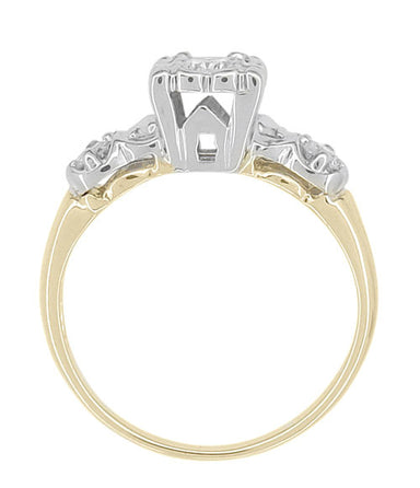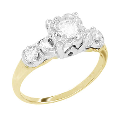 Vintage 1950's Solitaire Old European Cut Diamond Engagement Ring in Two Tone White and Yellow 14K Gold