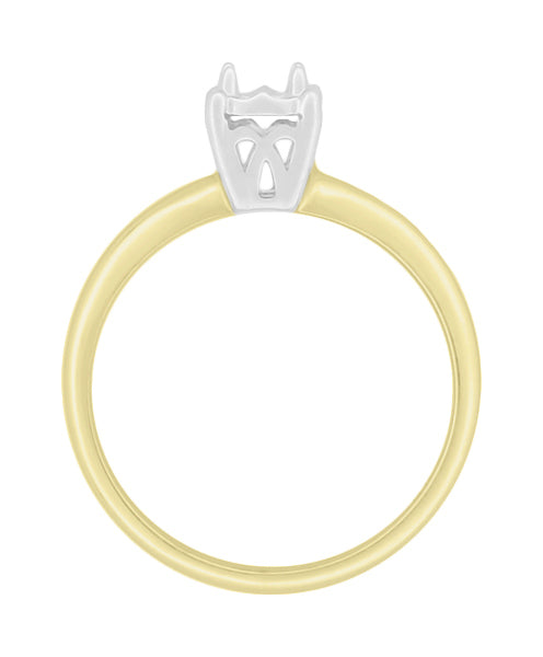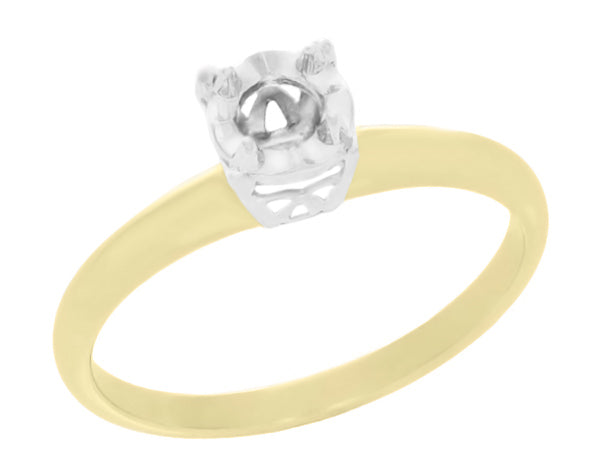 Mixed Metals 14K Yellow and White Gold Vintage Style Illusion Solitaire Ring Setting - for a 0.25, 0.33, 0.50, 0.64 Carat Diamond