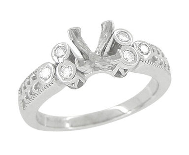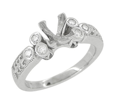 Crafted to order in 14K white gold, this heirloom ring mounting is sold without a diamond center stone to securely accommodate a square princess cut diamond of 6.6 - 7.0 millimeters in diameter (approximately 2 carat in weight).
