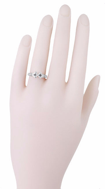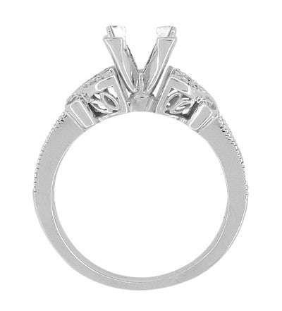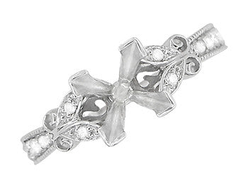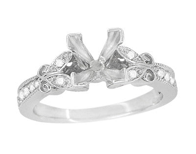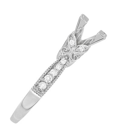 Twin Butterflies Art Deco Filigree 2 Carat Princess Cut Diamond Engagement Ring Setting in 14 Karat White Gold