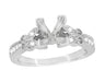 The gallery of the ring features a romantic petal filigree design. This lovely vintage inspired ring setting measures 6.7 millimeters at top of ring, tapers down to 2.0 millimeters at bottom of ring and sits 7.6 millimeters off finger.