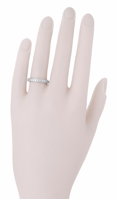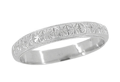 Art Deco Square Flowers Millgrain Edged Antique Reissue Wedding Band in White Gold - 3.5mm Wide
