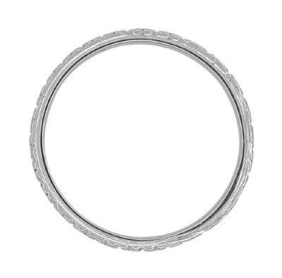 Artisan made to order in your choice of 18K, 14K or 10K white gold, this classic and unique white gold engraved vintage style heirloom band is a work of art which looks great worn alone - or next to another ring!